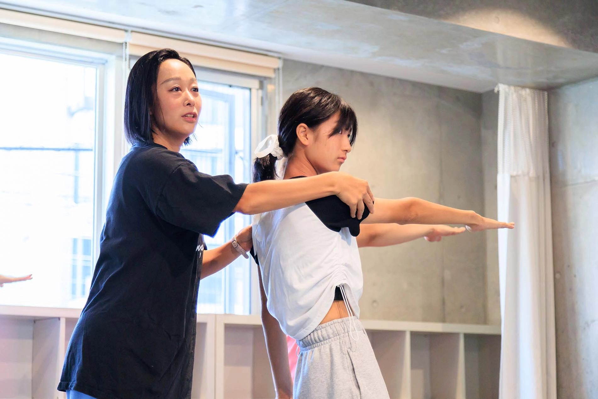 落ち着いた雰囲気で集中しやすいAスタジオ、そして自然光が差し込みのびのびと体を動かすことができる、小田急線を望む明るく開放的なBスタジオ、どちらのスタジオも壁2面が鏡になっており、さまざまな角度から姿勢や動きを確認しながらレッスンに取り組めます。